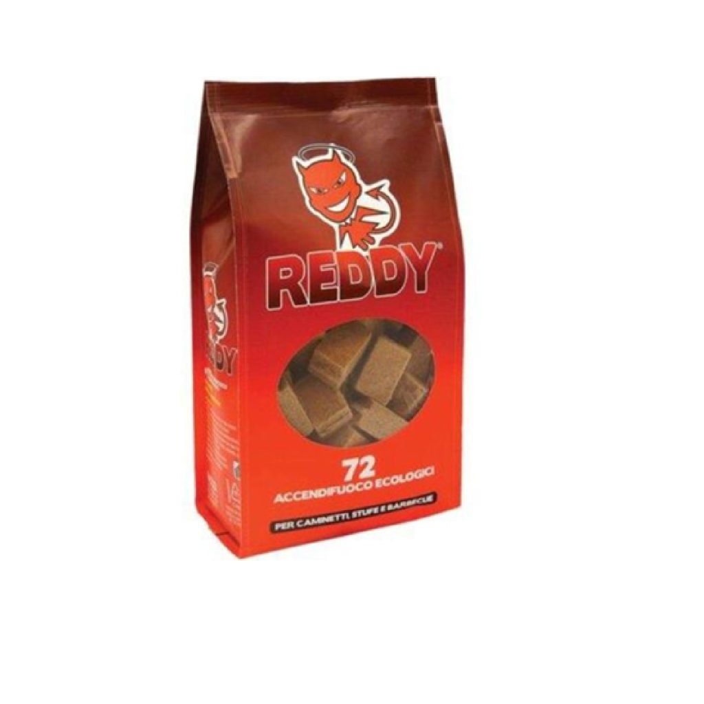 Accendifuoco ecologico 72 cubetti REDDY 72 tavolette a base di cera e legno certificato FSC, per accendere barbecue, camini e stufe. Non tossiche, inodore, ecologiche e non emanano fumo.