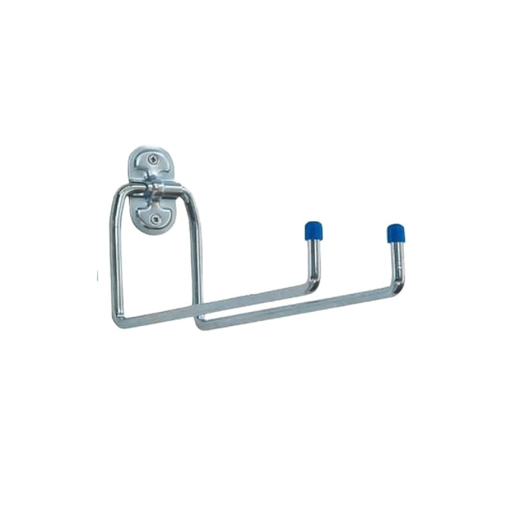 Gancio multiuso a U art.4050 tipo doppio, in acciaio zincato. Con piastra per applicazione a parete, asta Ø 9 mm. Misure: 18×12 cm