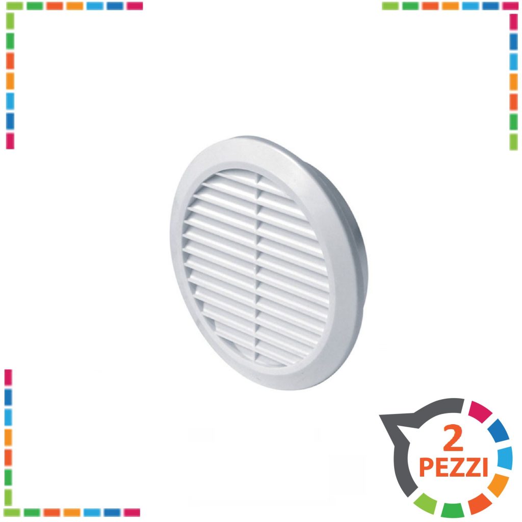 Griglia di areazione tonda ad incasso con protezione anti insetti in ABS bianca. Il prodotto è indicato per areare i locali. Diversi diametri disponibili: 60 – 80 – 100 – 120 mm . Ogni confezione è composta da due griglie.