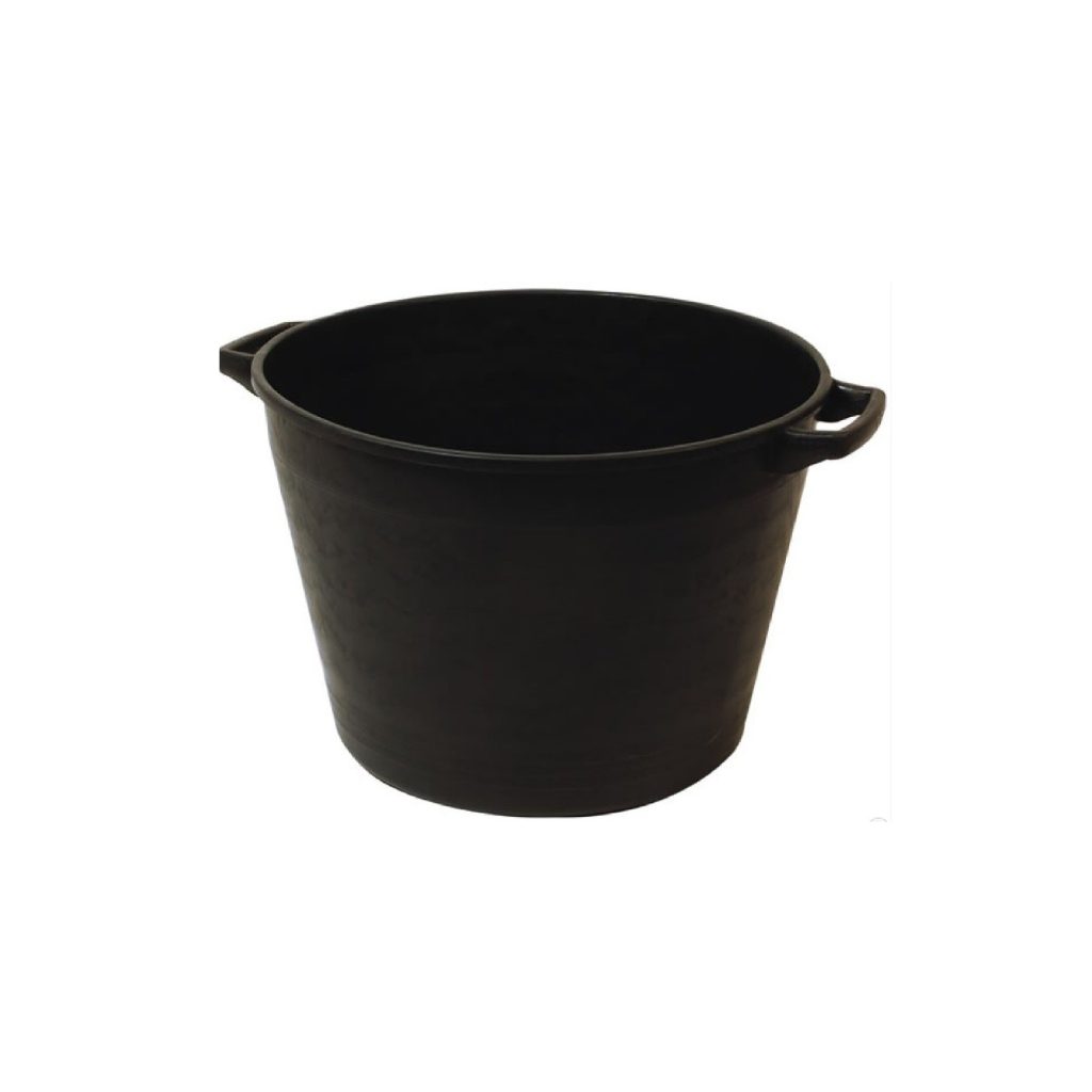 Mastellotto tondo in materiale plastico, colore nero, con manici. Disponibile in due misure: 25 lt ( diametro 40 x h. 30 cm) per malta , 40 lt (diametro 45 x h. 32 cm) per macerie.